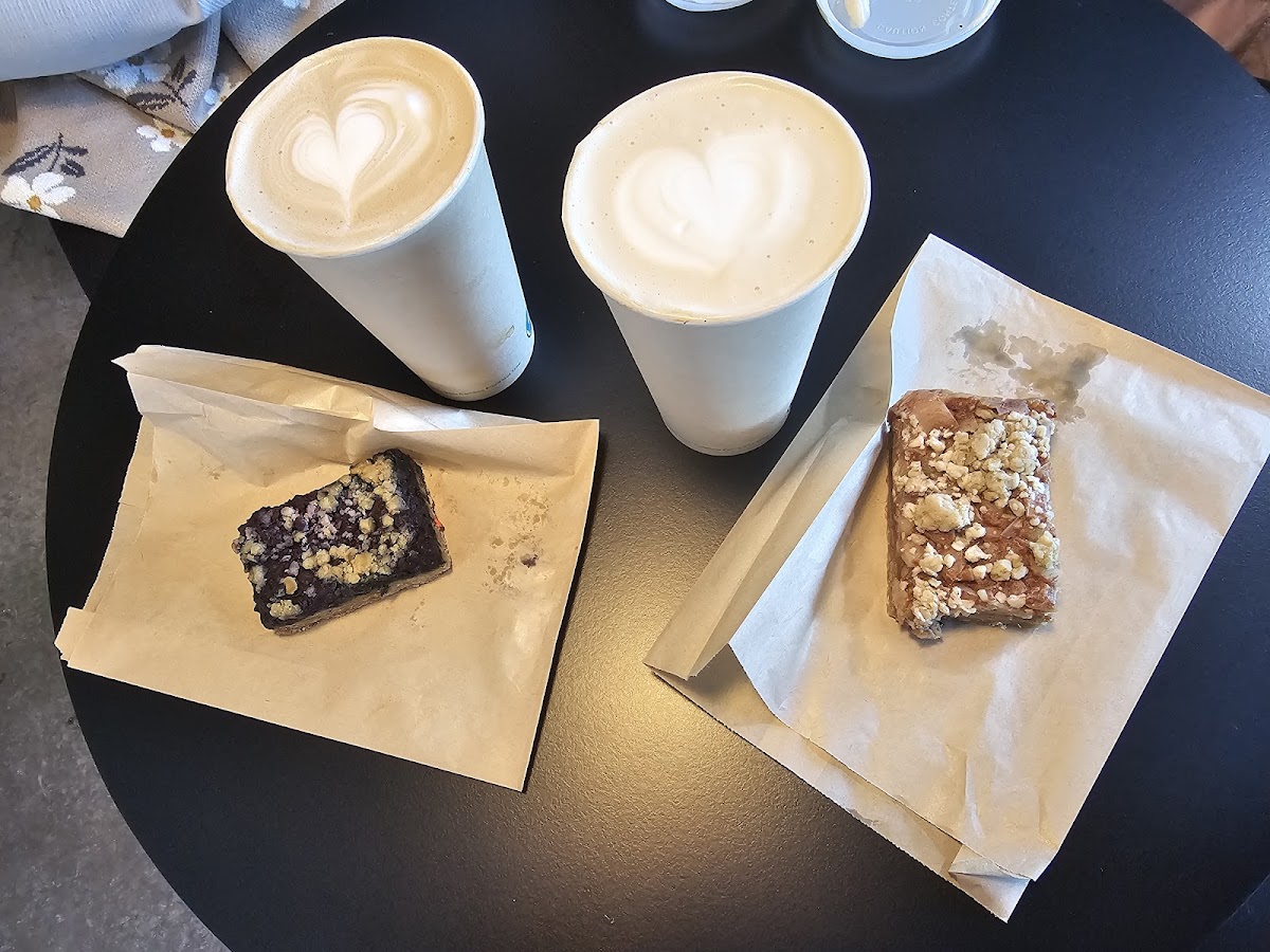 Great little local coffee shop Way too busy for size and location (which could be good or bad) Pricing a little higher. Staff was friendly, could tell a little stressed as it was busy. They did make our order wrong but they noticed & very quickly fixed it before handing it to us, I was happy they caught the mistake as it would have made our day to go a lot different.